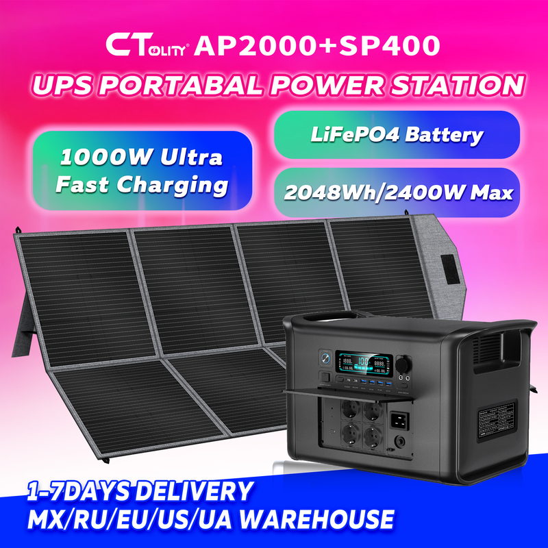 CTOLITY AP2000 2048Wh Solar Generator Portable Power Station 2400W Solar Generator Camp LiFePO4 Battery UPS Emergency Power Camping RV