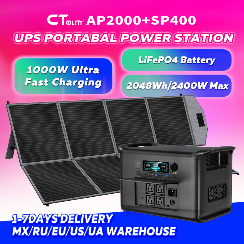 CTOLITY AP2000 2048Wh Solar Generator Portable Power Station 2400W Solar Generator Camp LiFePO4 Battery UPS Emergency Power Camping RV