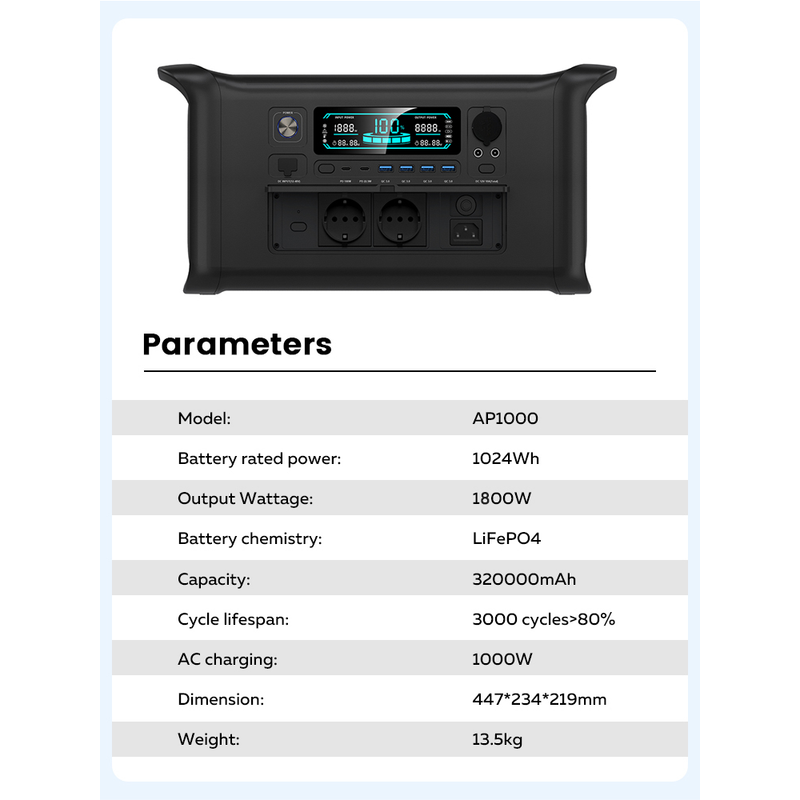 CTOLITY UAF1100 992Wh Portable Power Station Lifepo4 Battery Power Bank 310000Mah Solar Generator Emergency Power Supply RV