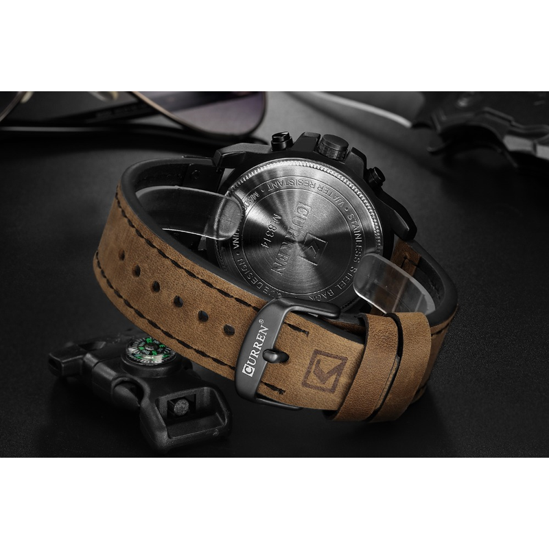 CURREN Mens Watches Top Luxury Brand Waterproof Sport Wrist Watch Chronograph Quartz Military Genuine Leather Relogio Masculino