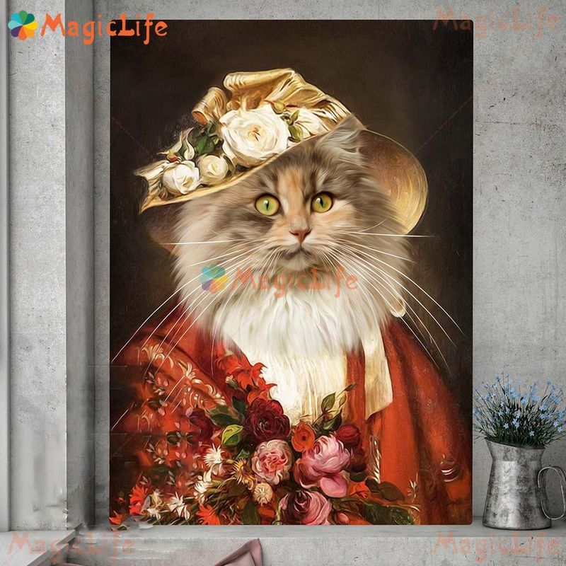 Custom Cat Pet Portrait Royal Animals Vintage Dog Poster Wall Art Canvas Painting Wall Pictures For Living Room Decor Unframed