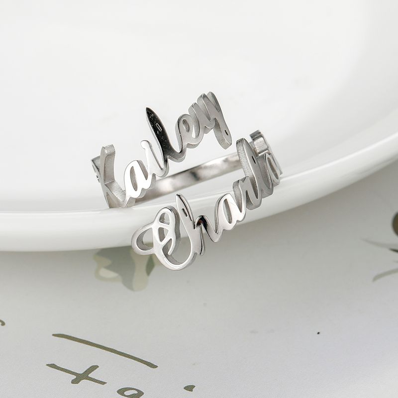 Custom Double First Name Finger Ring For Women Men Personalized Couple Family Gift Gold Color Stainless Steel Metal Jewelry
