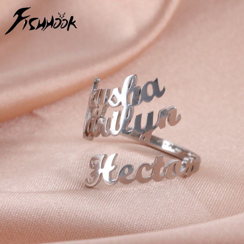 Fishhook Custom Double Name Finger Ring For Women Men Personalized Rings Couple Family Gift Gold Color Stainless Steel Jewelry