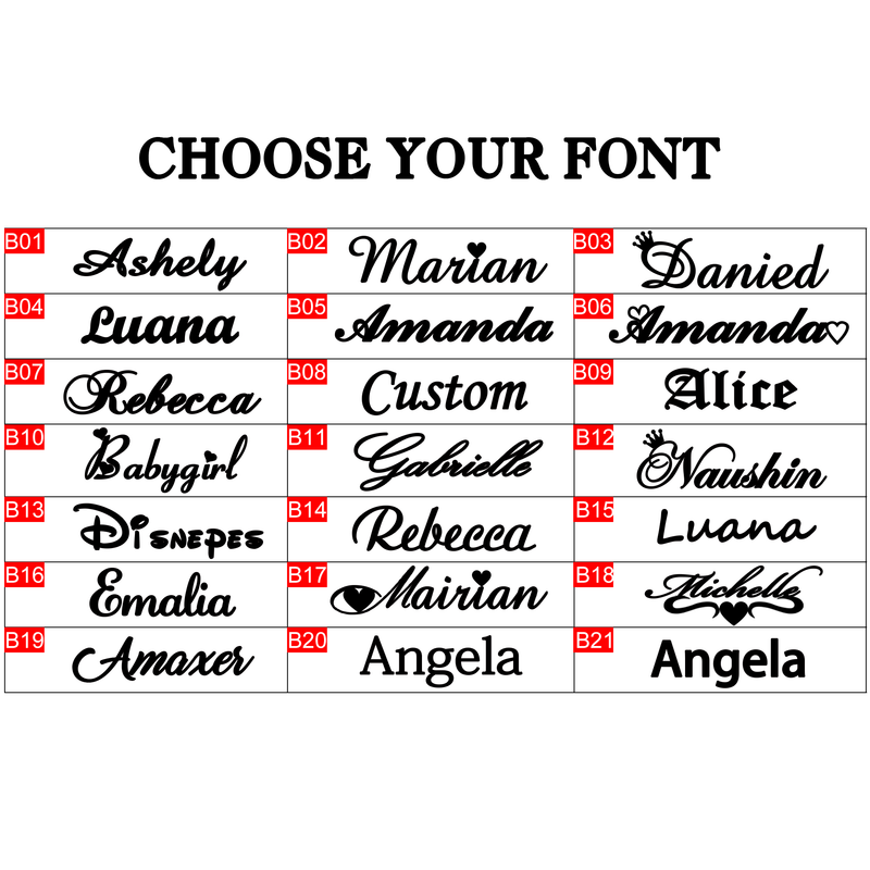 1.Please give me the name you want.2.If you forget to tell me the letters you want to customize, I will contact you.If you haven't responded to the information after 3 days, we will send you with out name, because the platform has a requirement for the delivery time.