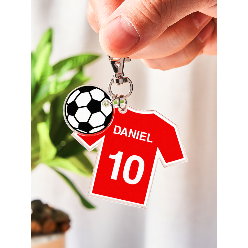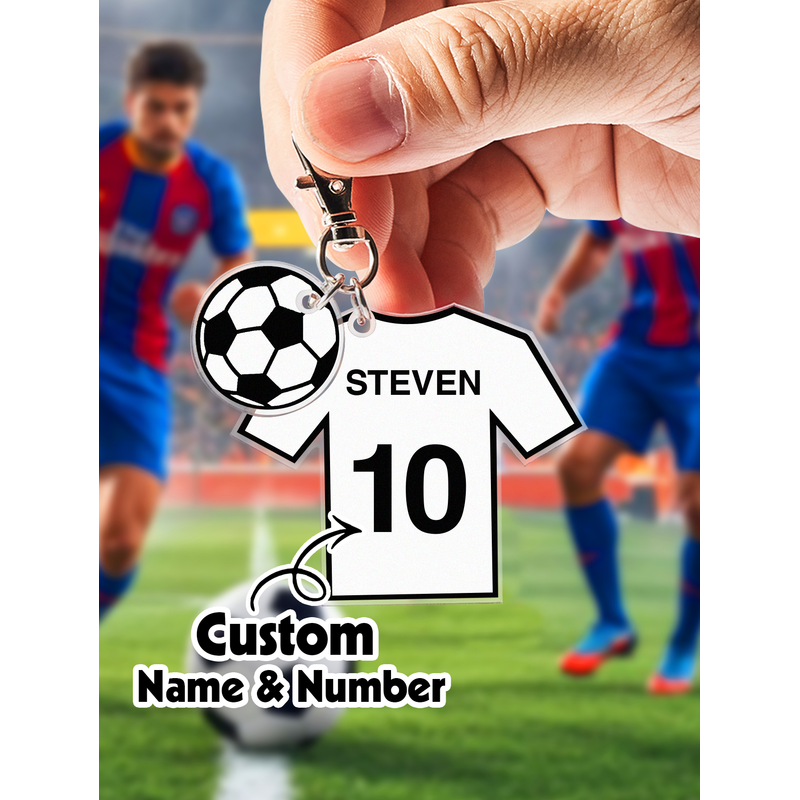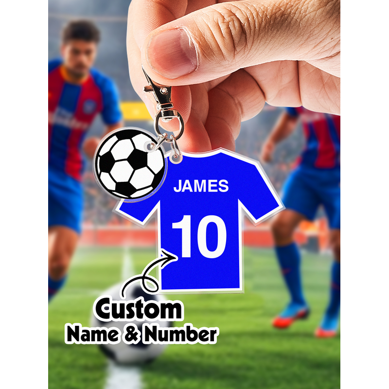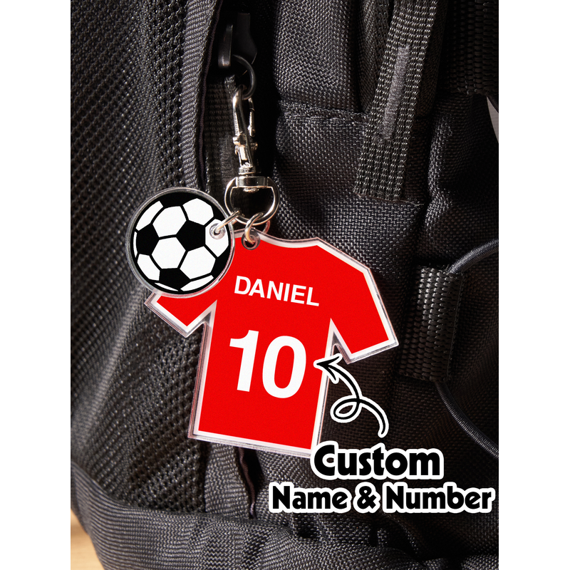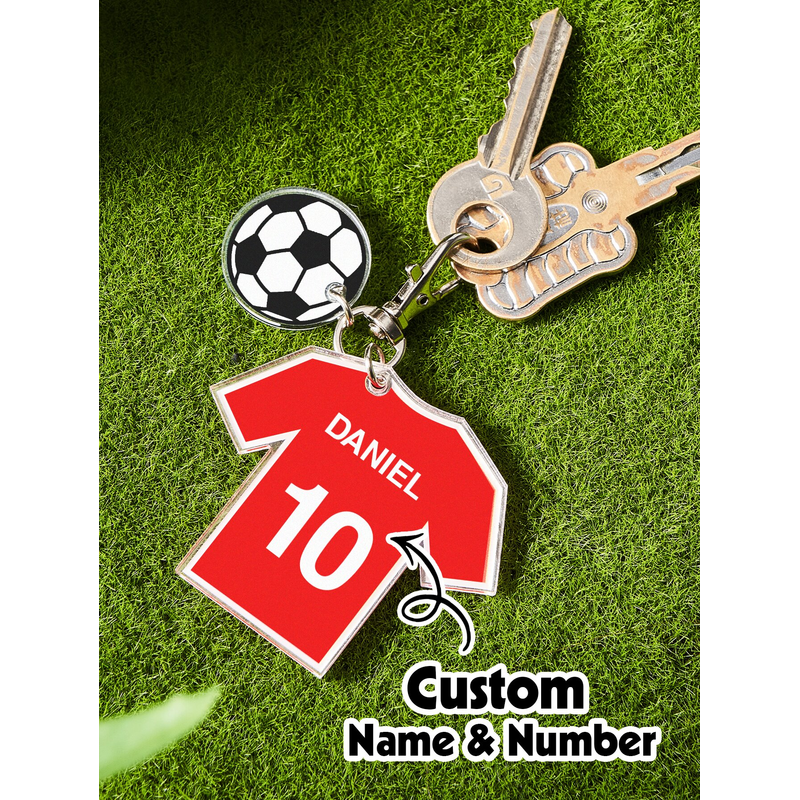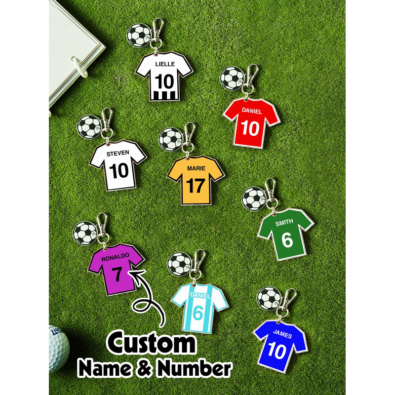Custom Football Jersey Keychain Personalized Name Number 8 Colors Available Soccer Fan Gift