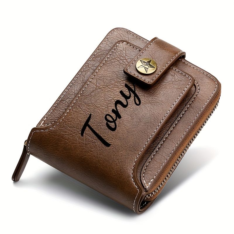 Custom Name Men's Wallet Gift Stylish Brown Faux Leather Engraved Purse Personalized Decorative Durable Card Holder Coin Pocket