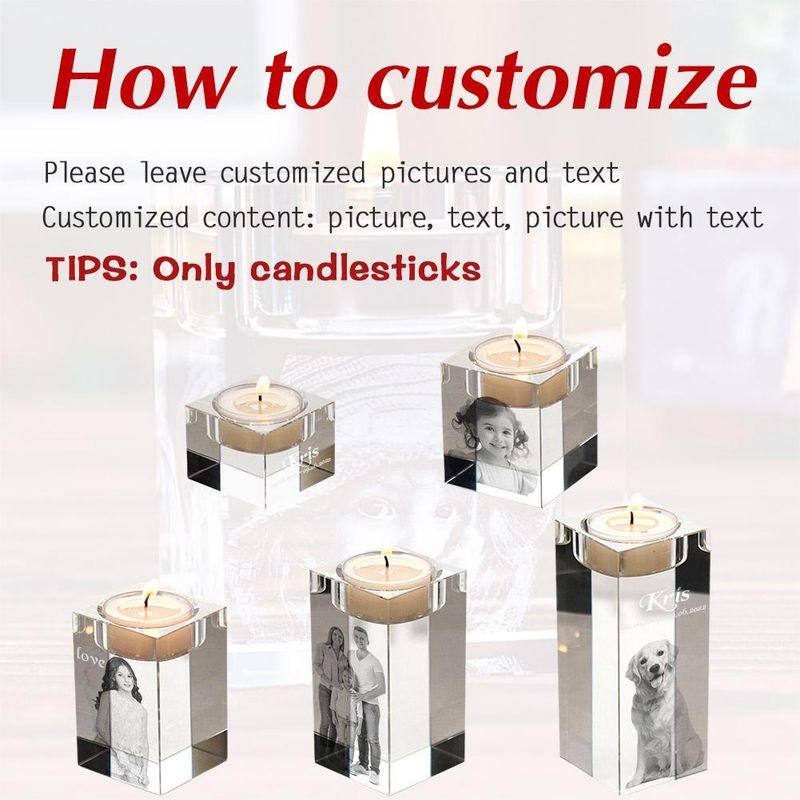HIGH QUALITY CRYSTAL MATERIAL: Crystal candle holders are made from premium quality crystal, this candle holder is designed to provide lasting beauty.2D laser engraving captures the essence of your photos and text, creating a stunning visual effect when illuminated by the candle.