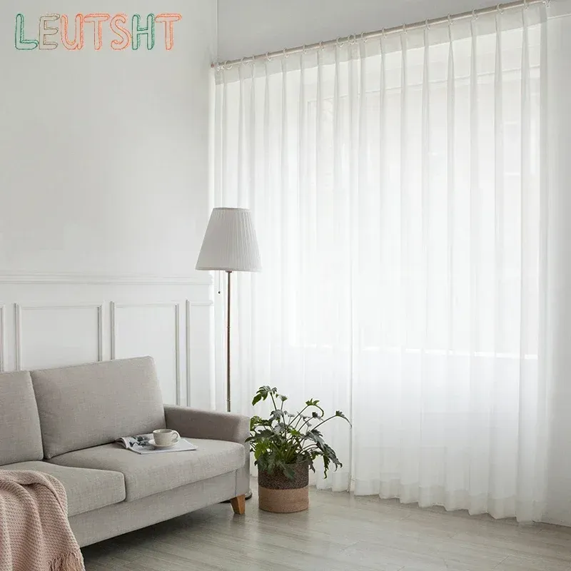 Custom Size White Sheer Curtains For Living Room Window Transparent Tulle Curtain Wedding Drapes Home Decor