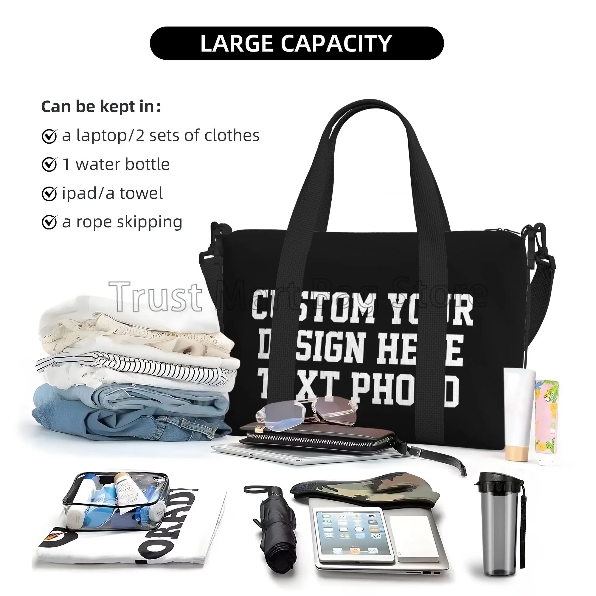 Custom Your Design Text Photo Print Duffle Bags Personalized Durable Weekender Overnight Bag for Women Men Travel Luggage Bag