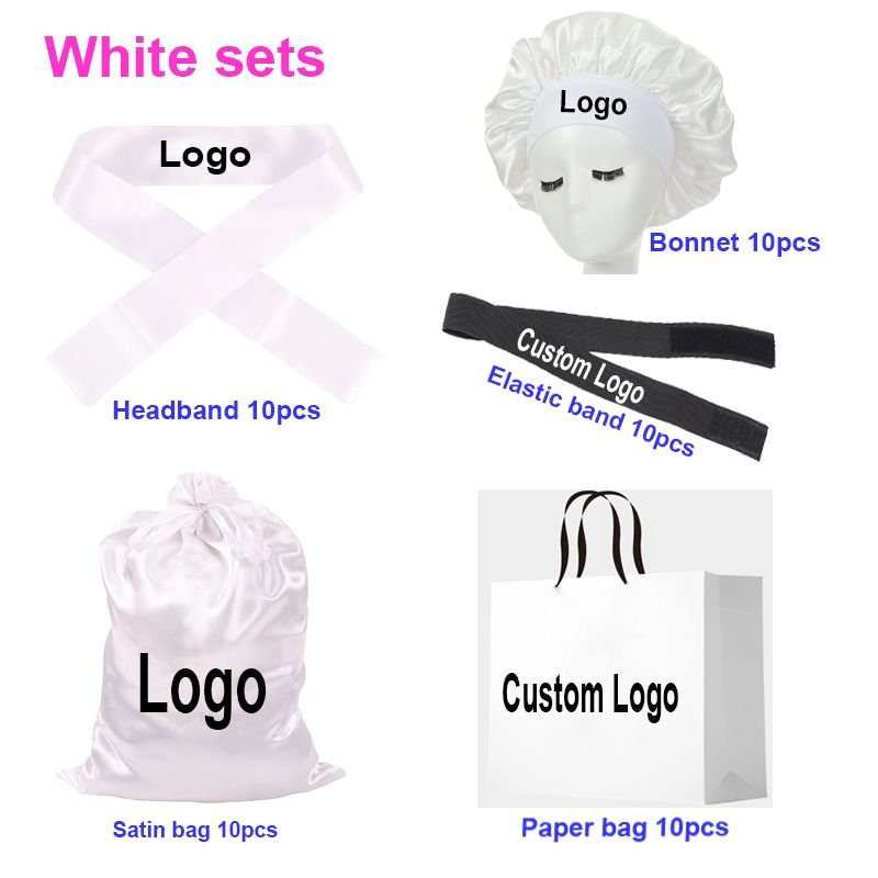 Customize 50Pcs Lace Band Paper Bag Satin Wig Bags For Hair Extension Packaging Satin Wig Cap For Curly Hair Edges Scarf Wrap