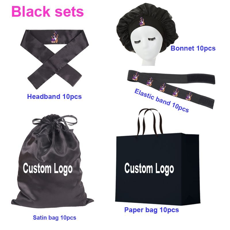Customize 50Pcs Lace Band Paper Bag Satin Wig Bags For Hair Extension Packaging Satin Wig Cap For Curly Hair Edges Scarf Wrap