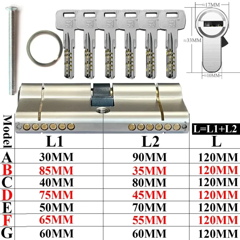 Customize the same key to open all cylinder doors European standard high quality Door lock 11-pin anti-theft lock cylinder