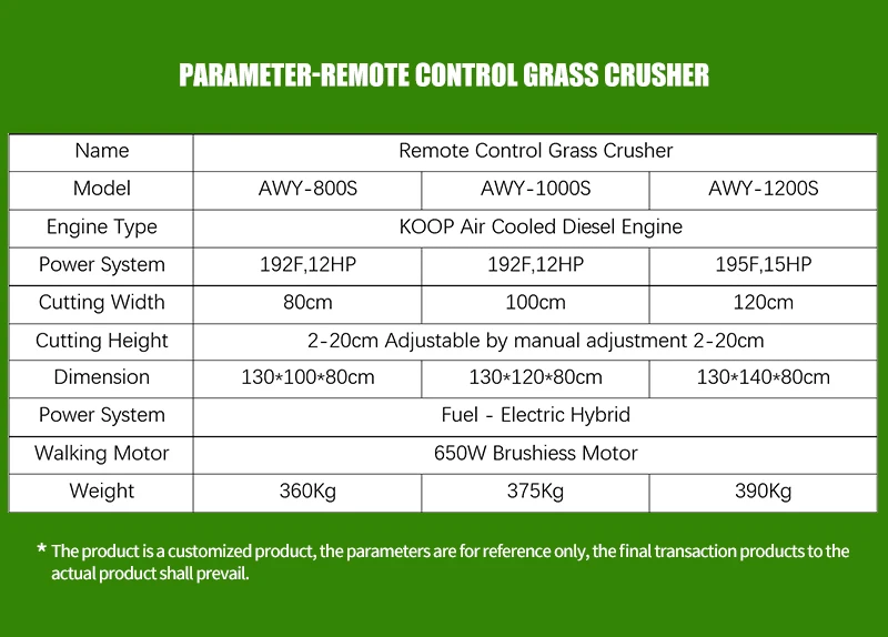 Customized 15HP Flail Mower Diesel Engine Small Robot Grass Cutter Cutting Width 800mm/1000mm/1200mm Remote Control Crawler Lawn