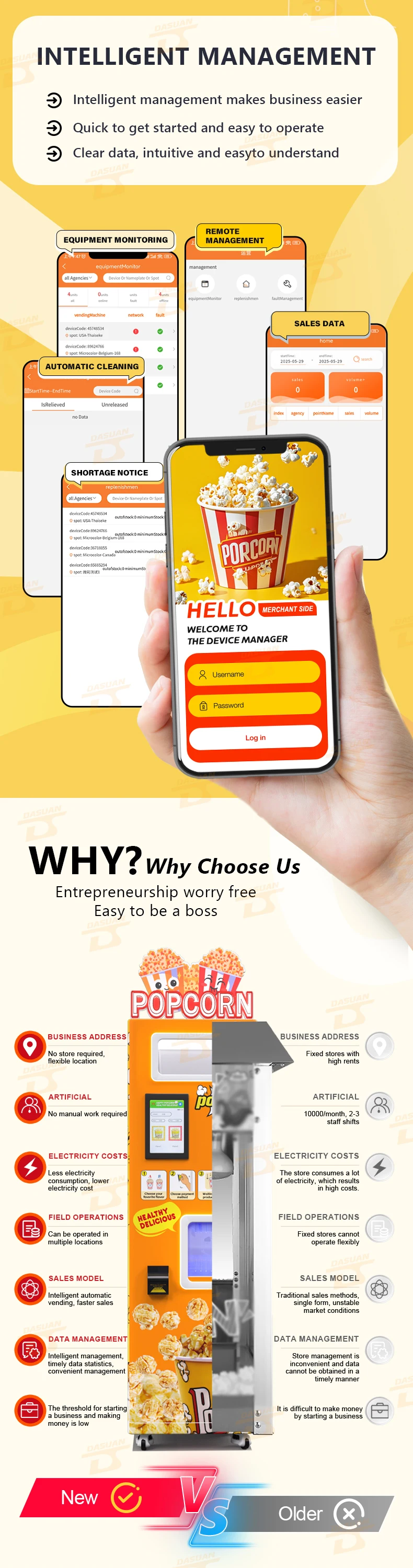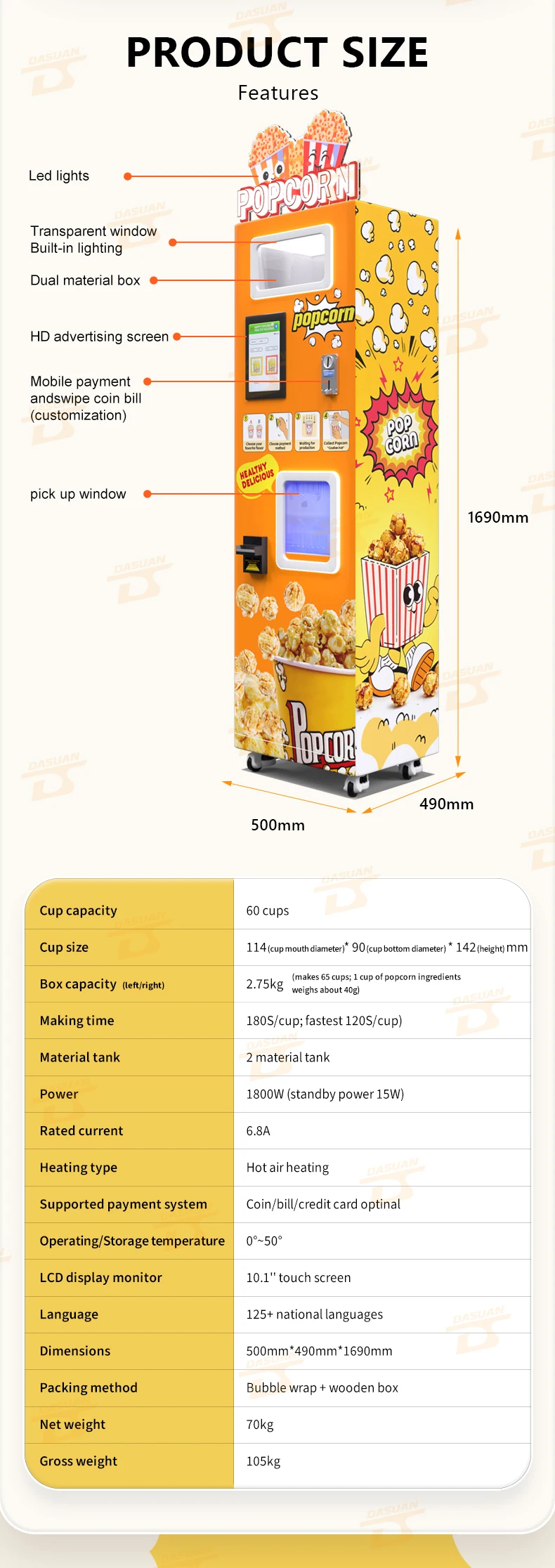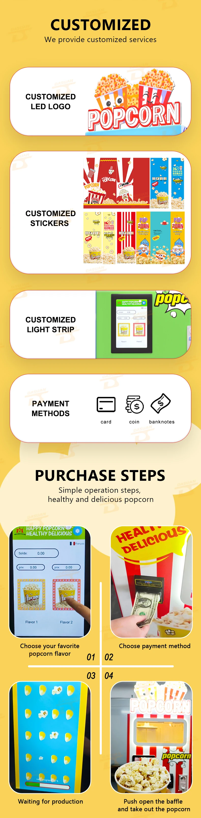 Food machines such as dining carts, pizza machines, cotton candy machines, ice cream machines, popcorn machines, vending machines, etc.