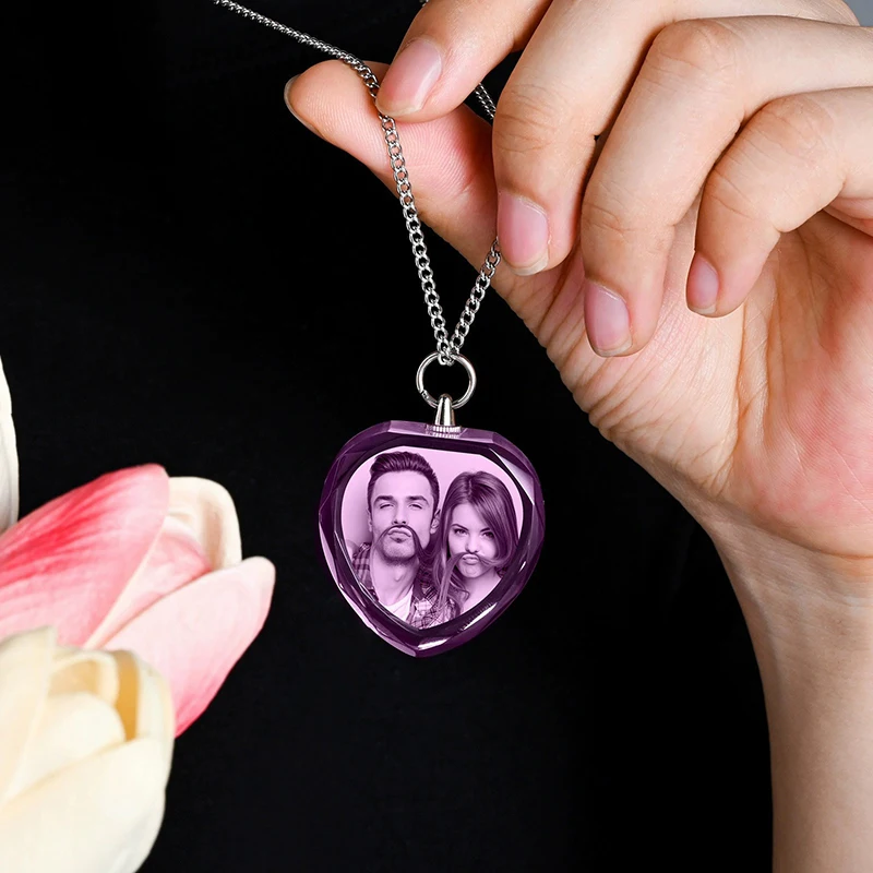 Customized 3D Crystal Photo, Personalized Gift Necklace Heart, Gift for Wife,Women, Men, Great Custom Gifts With Your Own Photo