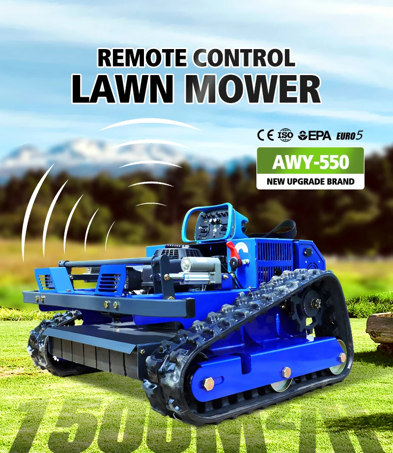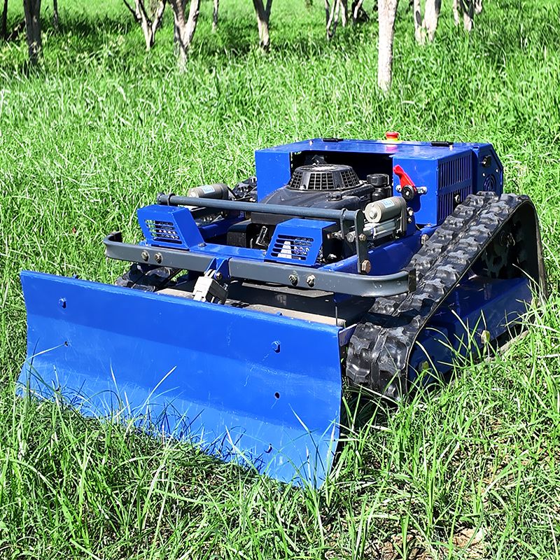 Customized 550mm cutting width, remotely controlled tracked small robot lawn mower with snow shovel for lawn care