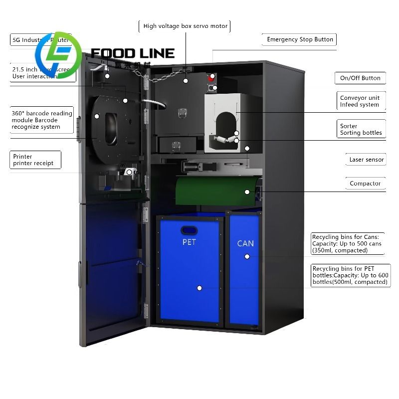 Customized AI Recognition Reverse Vending Machine with APP Control for Bottle/Can Recycling
