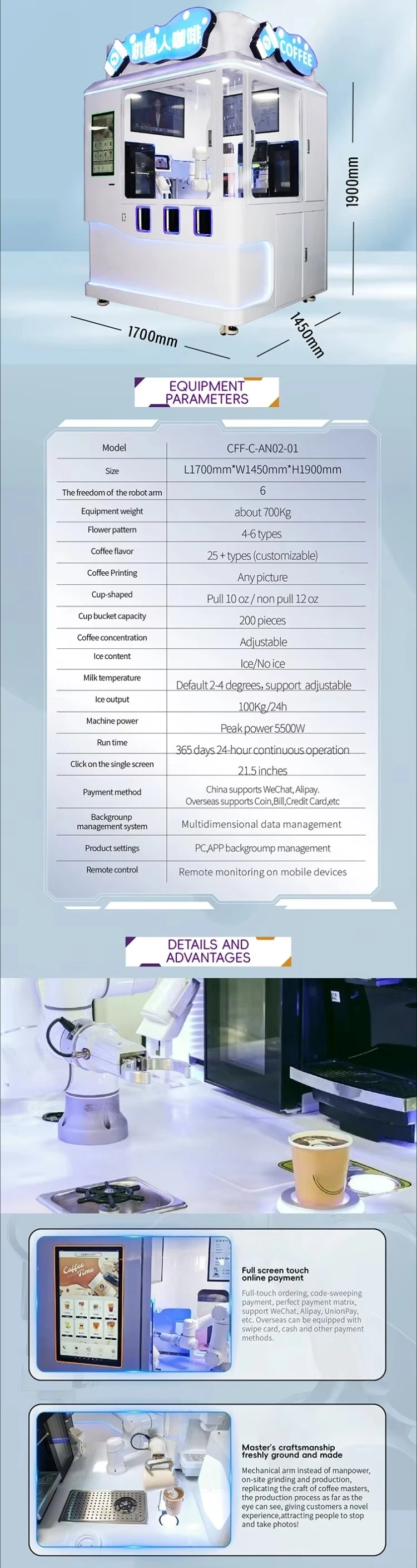 Customized AI Robotic Semi-Auto Coffee Vending Machine SDK Stainless Steel Robot Arm Control System 24h Commercial Use