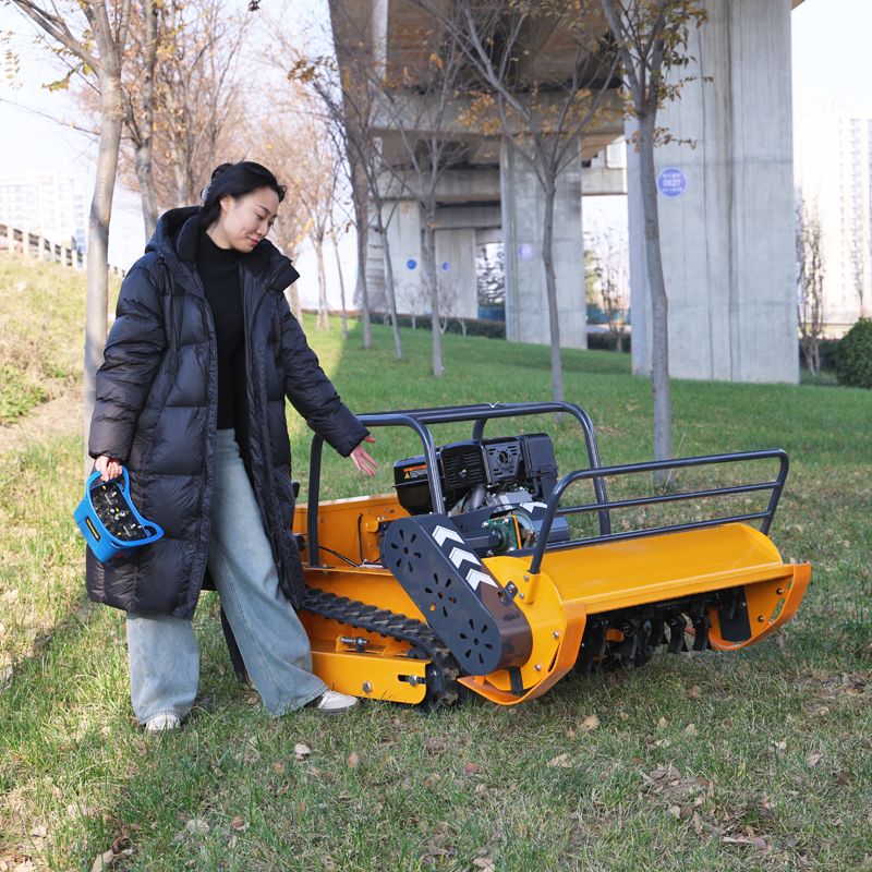 Customized and newly upgraded remote-controlled lawnmower, with the option to add a snow plow attachment.