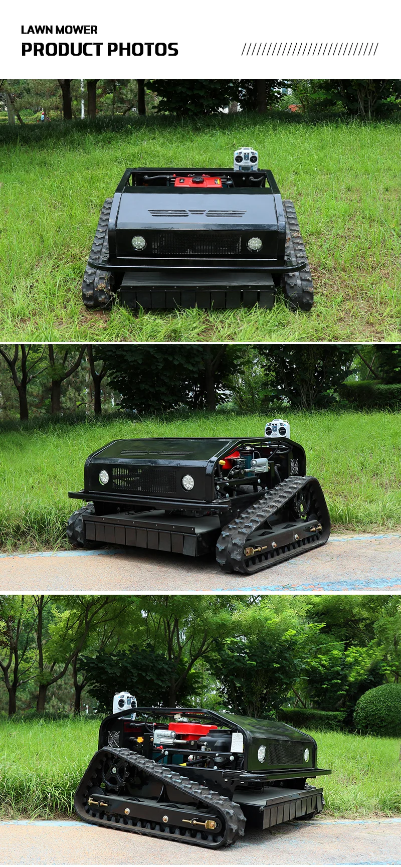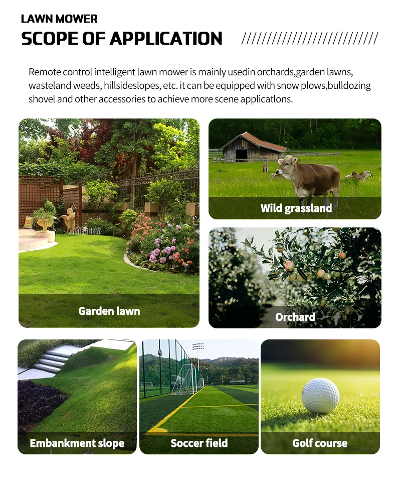 customized CE Certified Remote Control Lawn Mower Crawler/Wheel Type Automatic Cordless Atv Grass Cutter Machine