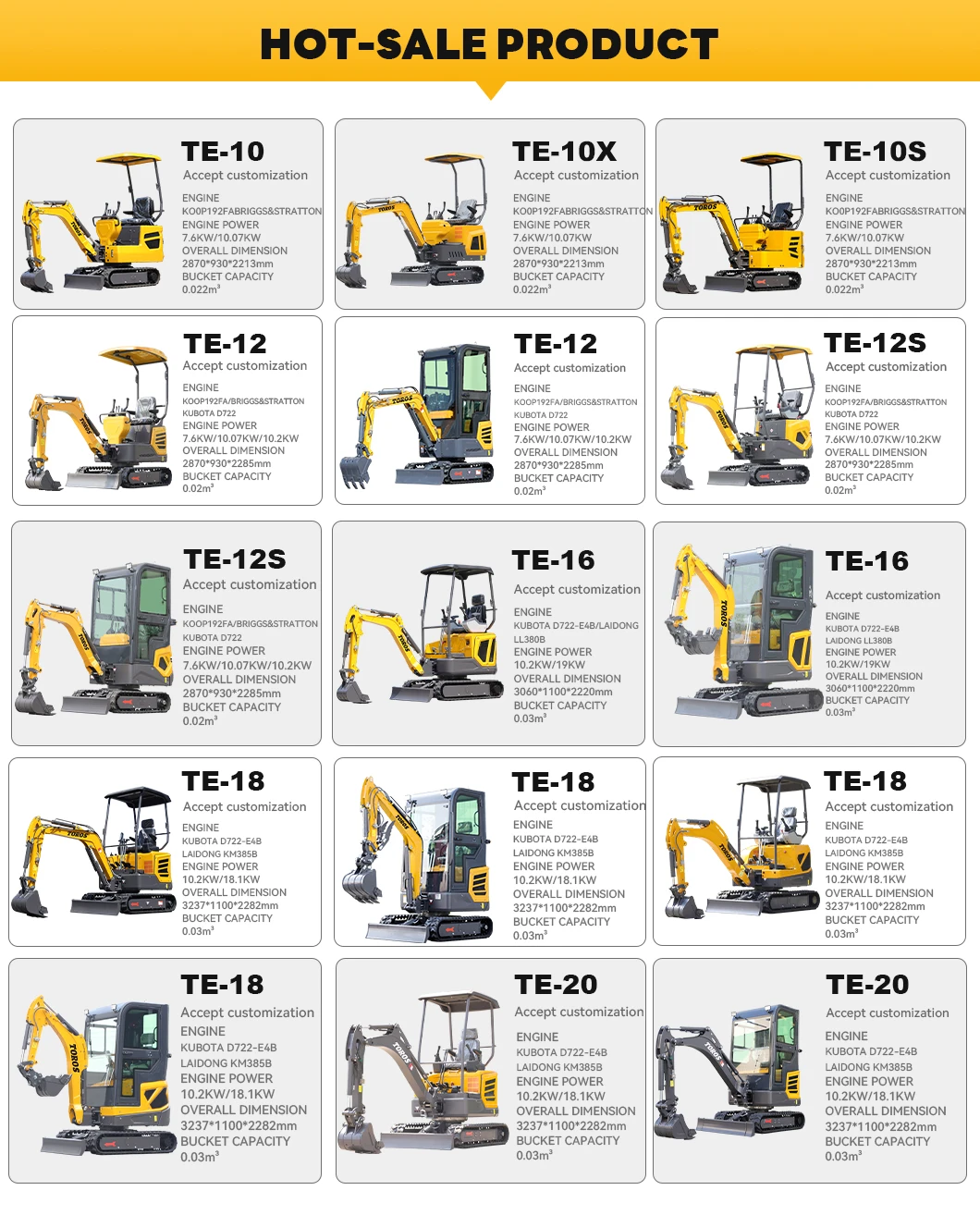 Our small excavators utilize advanced design concepts and manufacturing techniques, offering superior performance and reliable quality, meeting the needs of a wide range of applications, including construction, landscaping, and municipal engineering. Whether navigating complex terrain or confined spaces, our equipment can easily handle them, ensuring your productivity.