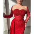 Customized Evening Dresses Pearls Mermaid Long for Women O Neck Long Sleeves Forma Classic High quality Sexy Simple