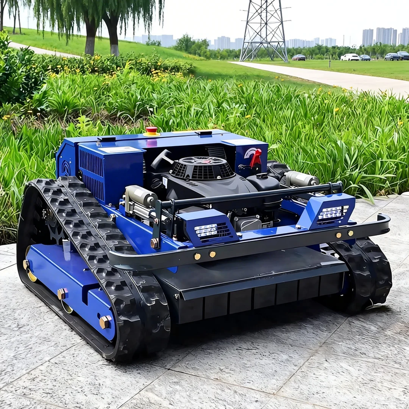 Customized Factory direct sale rubber crawler petrol engine remote control lawn mower high power self-propelled lawn mower