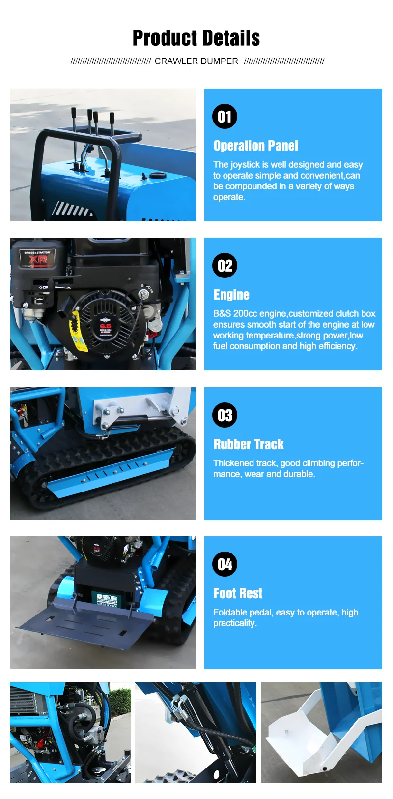 Customized Farm Construction Rotation Mini Crawler Dumper 500kg Multi-functional Hydraulic Mini Tracked Dumpers