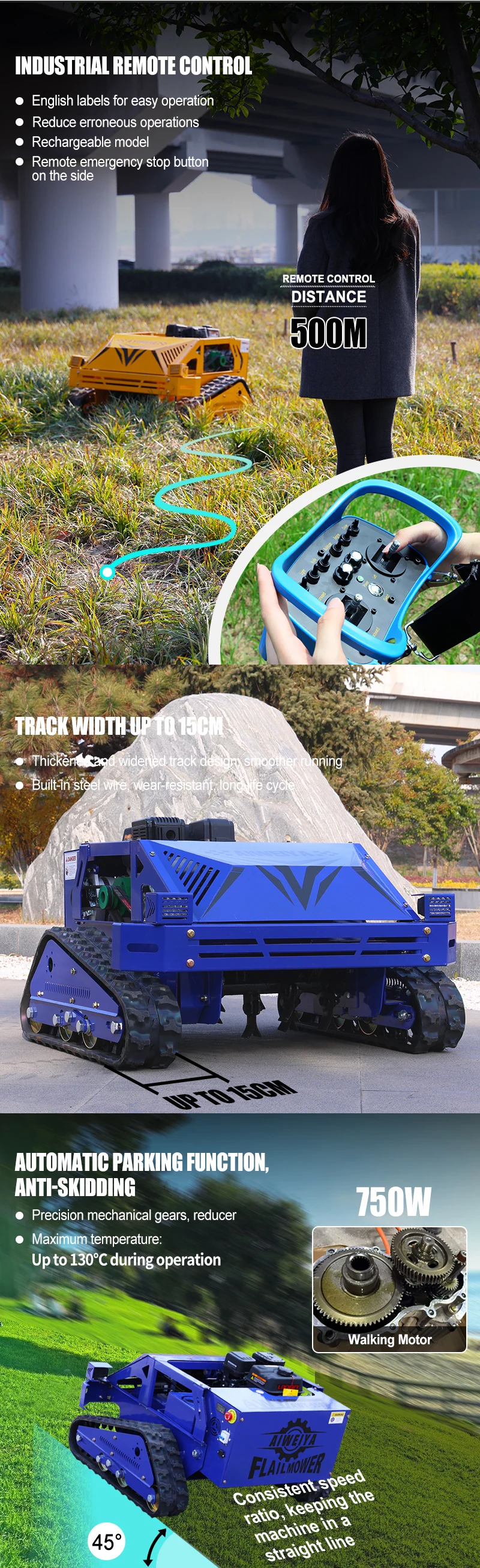 Customized flail mower 150MM wide track no rollover in snow-covered orchard slopes and factory depressions lawn mowers