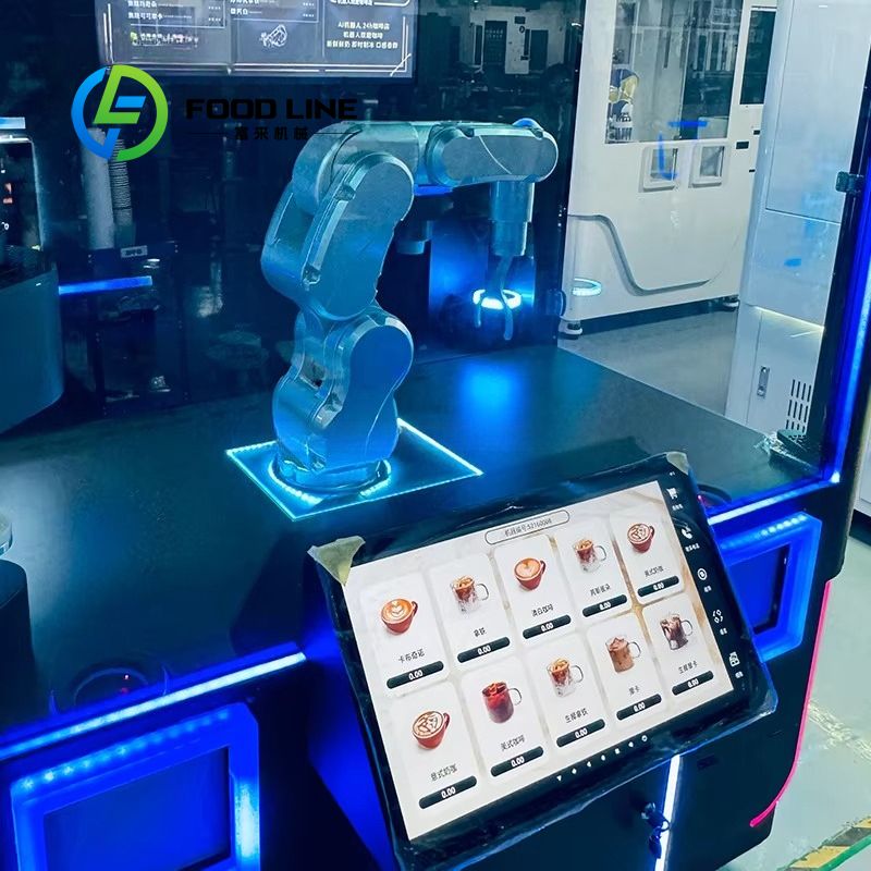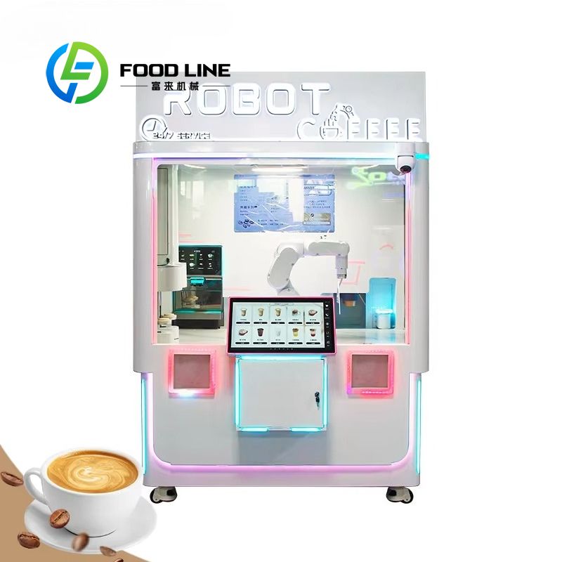 Customized Fully Automatic Barista Coffee Vending Machine Touch Screen Iced Kiosk SDK Credit Card Payment Metal Material