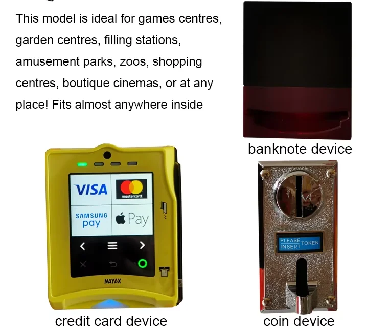Food machines such as dining carts, pizza machines, cotton candy machines, ice cream machines, popcorn machines, vending machines, etc.