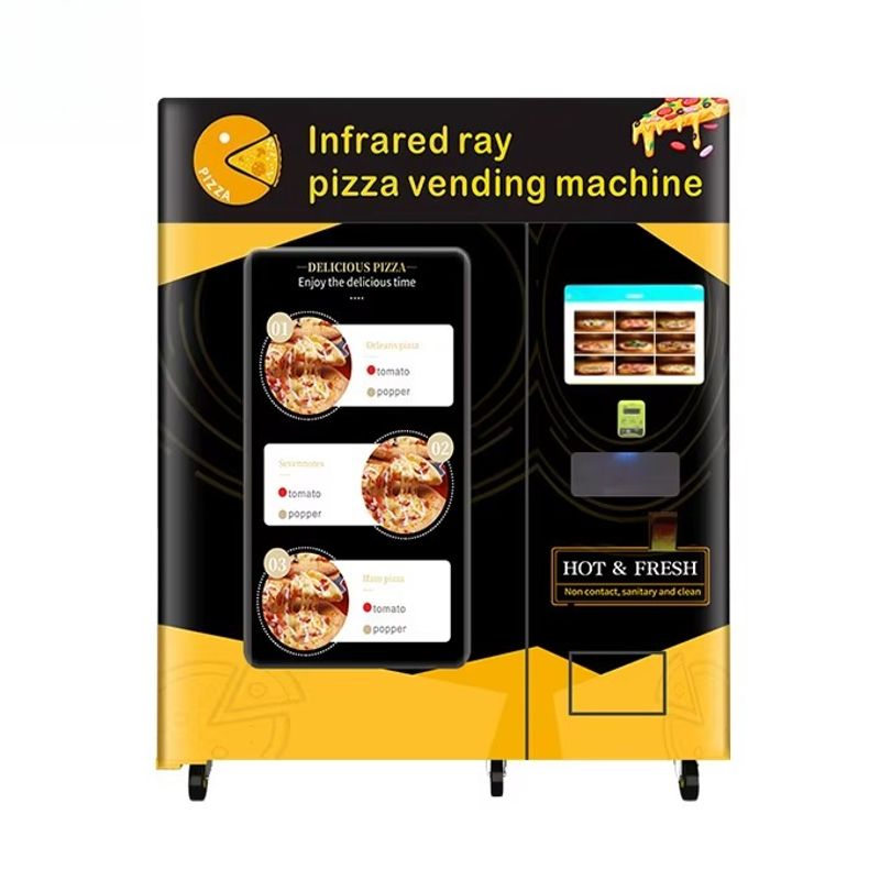 The PA-C6-A0 is a high-tech pizza cooling and baking robot designed for 24/7 self-service stores. Managers simply load the finished pizzas into the integrated freezer. Customers can select flavors via the 15-inch touch screen and complete payments instantly. The machine then automatically bakes and dispenses the hot pizza, complete with a paper box, providing a fresh meal in seconds.