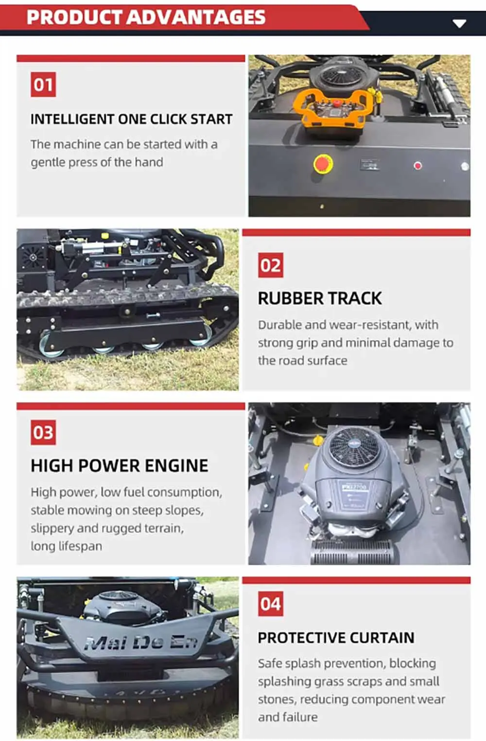 6. Especially suitable for: embankments, orchards, hills, terraces, photovoltaic power generation, and green lawn mowing.