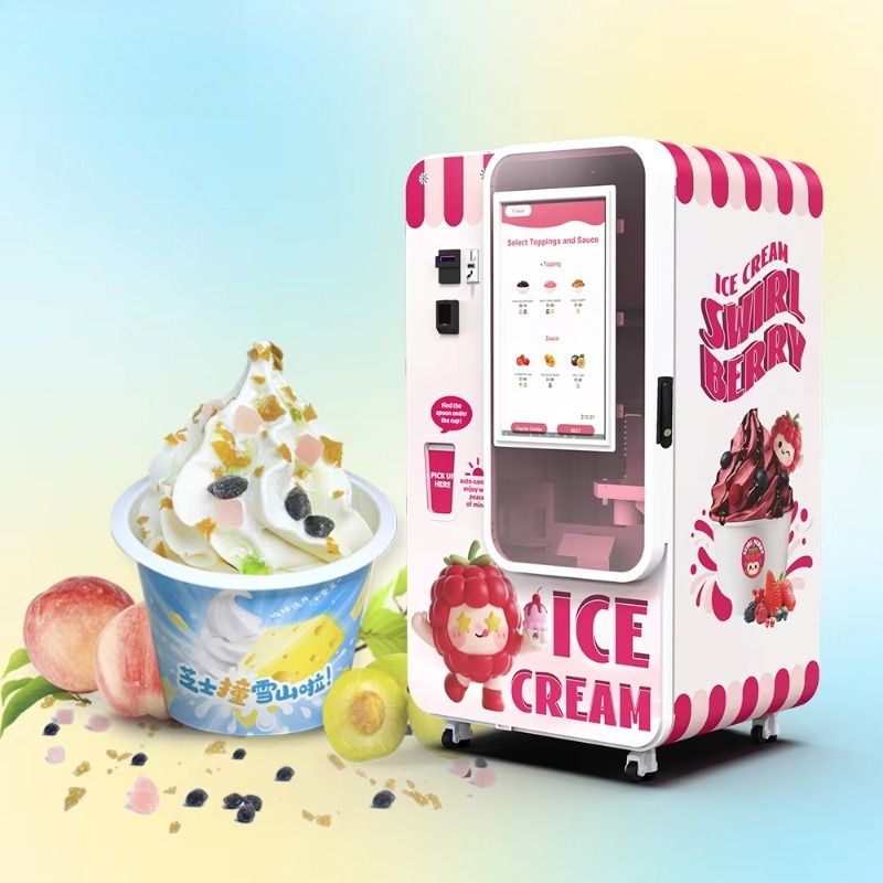 Customized Intelligent Ice Cream Vending Machine Automatic Coin Credit Card Compliant Multiple Options Shopping Mall