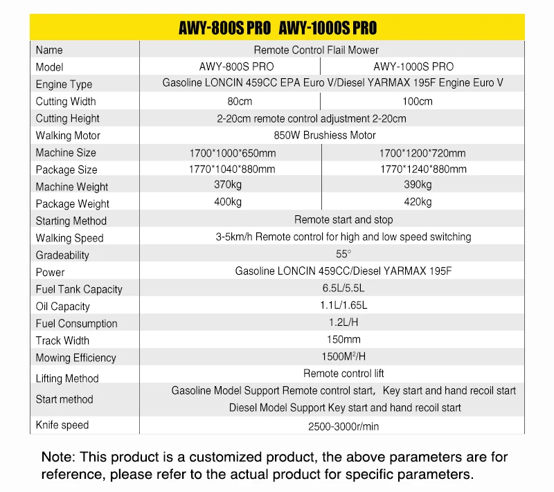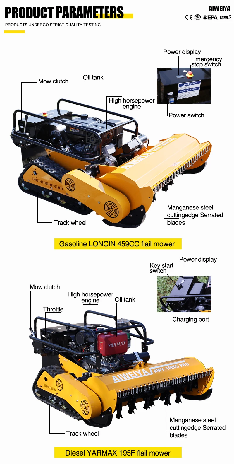 Customized Intelligent Remote Tool snow shovel lawn mower Tracked Remote Mower 150mm Width EPA Euro V Certified Gas flail Mower