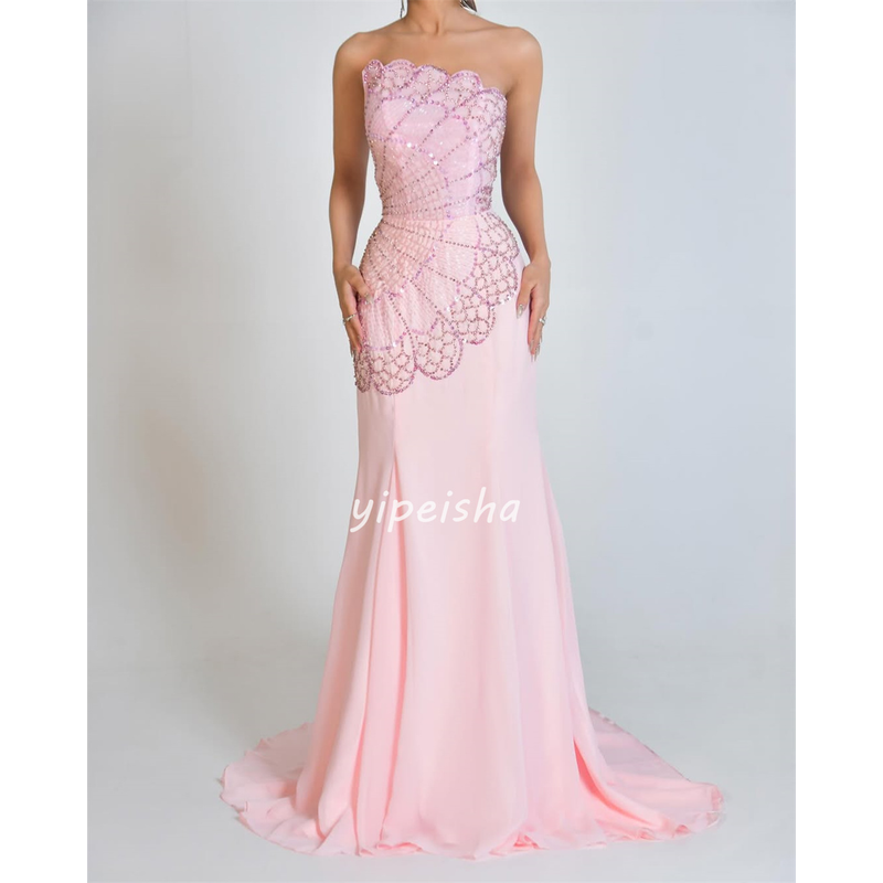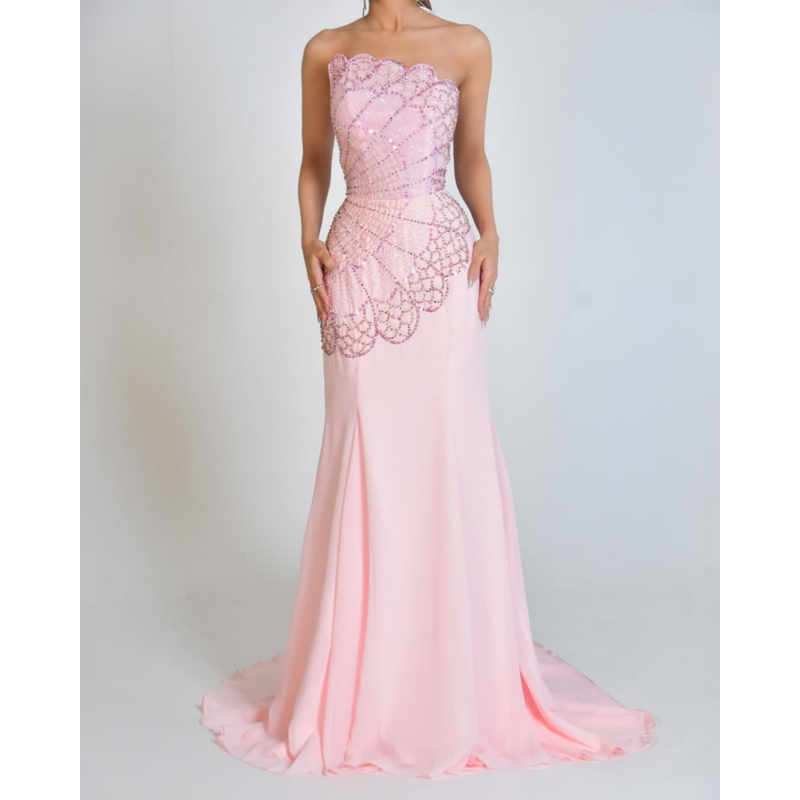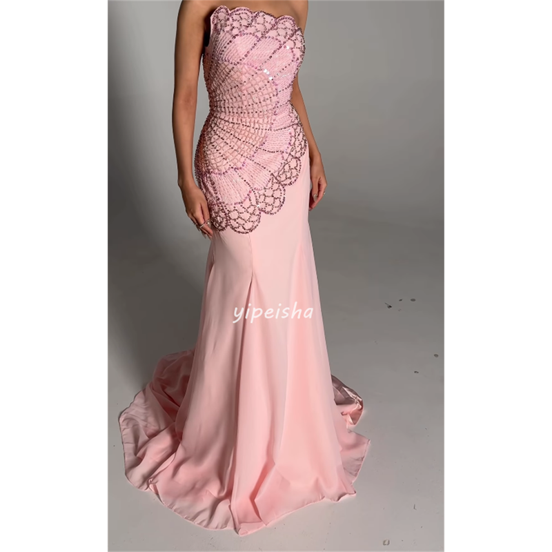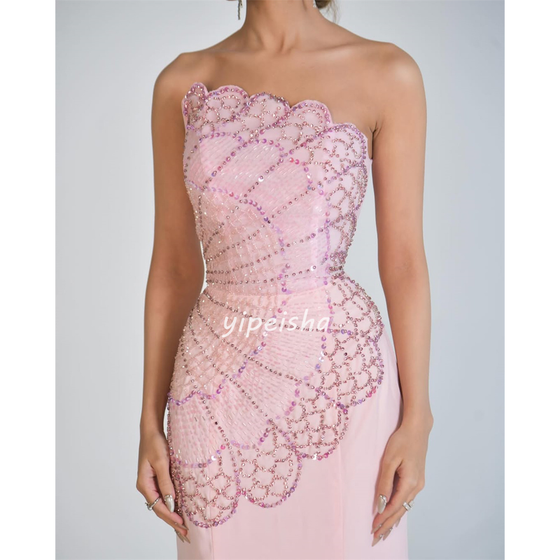 Customized Intricate Fashion Chiffon Rhinestone Beading Straight Strapless Long Dresses Bespoke Occasion Dresses Formal Classic