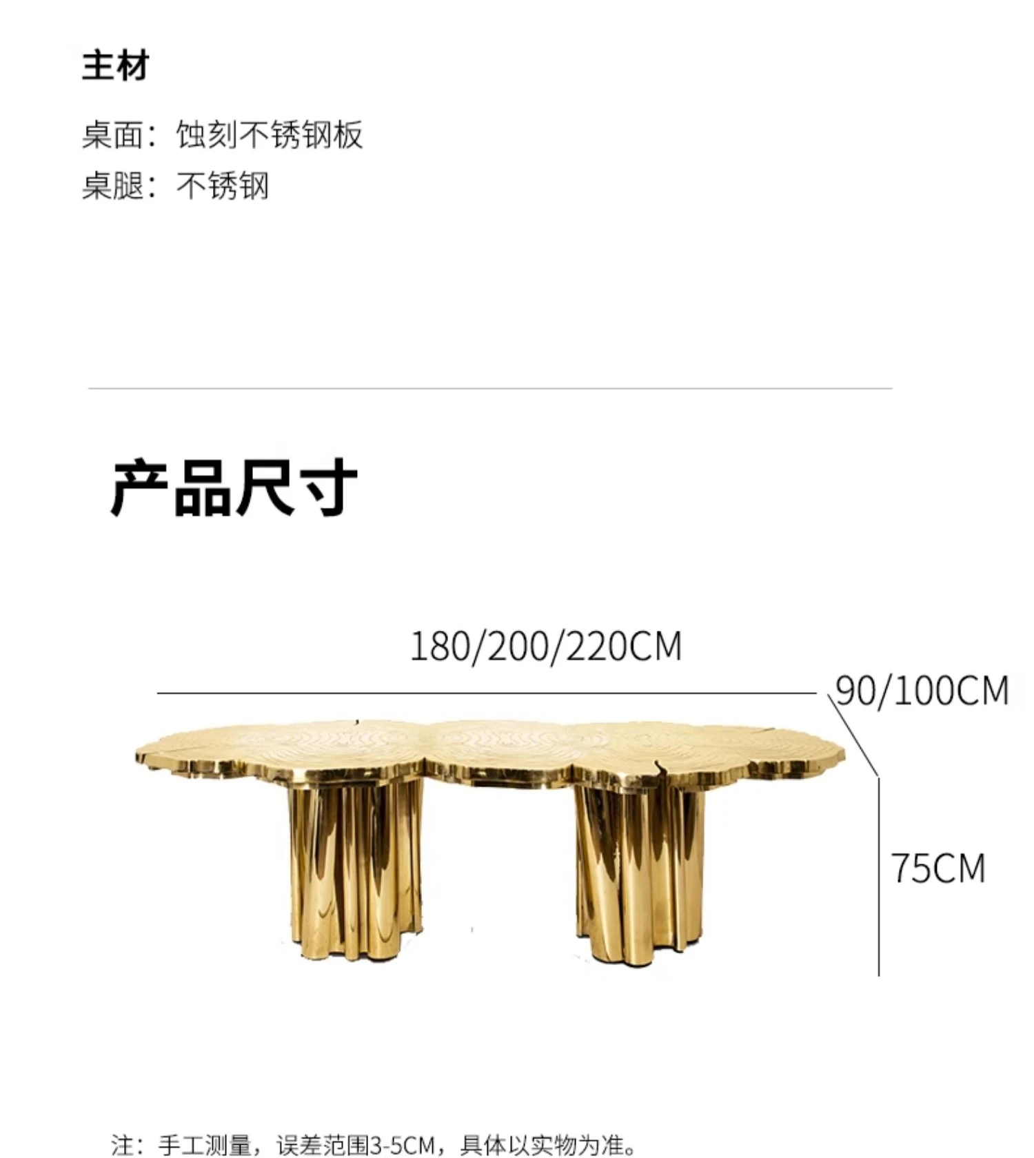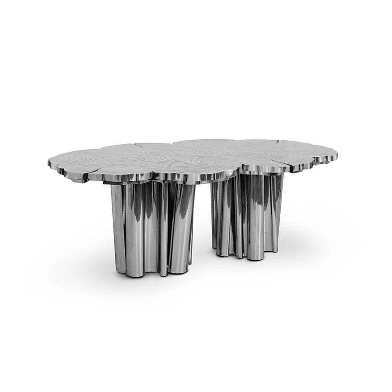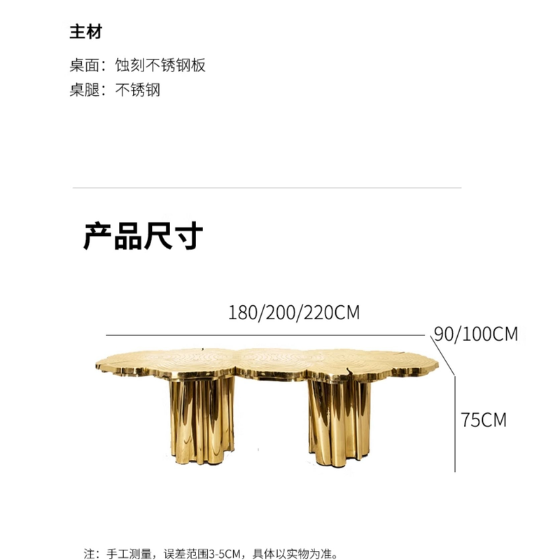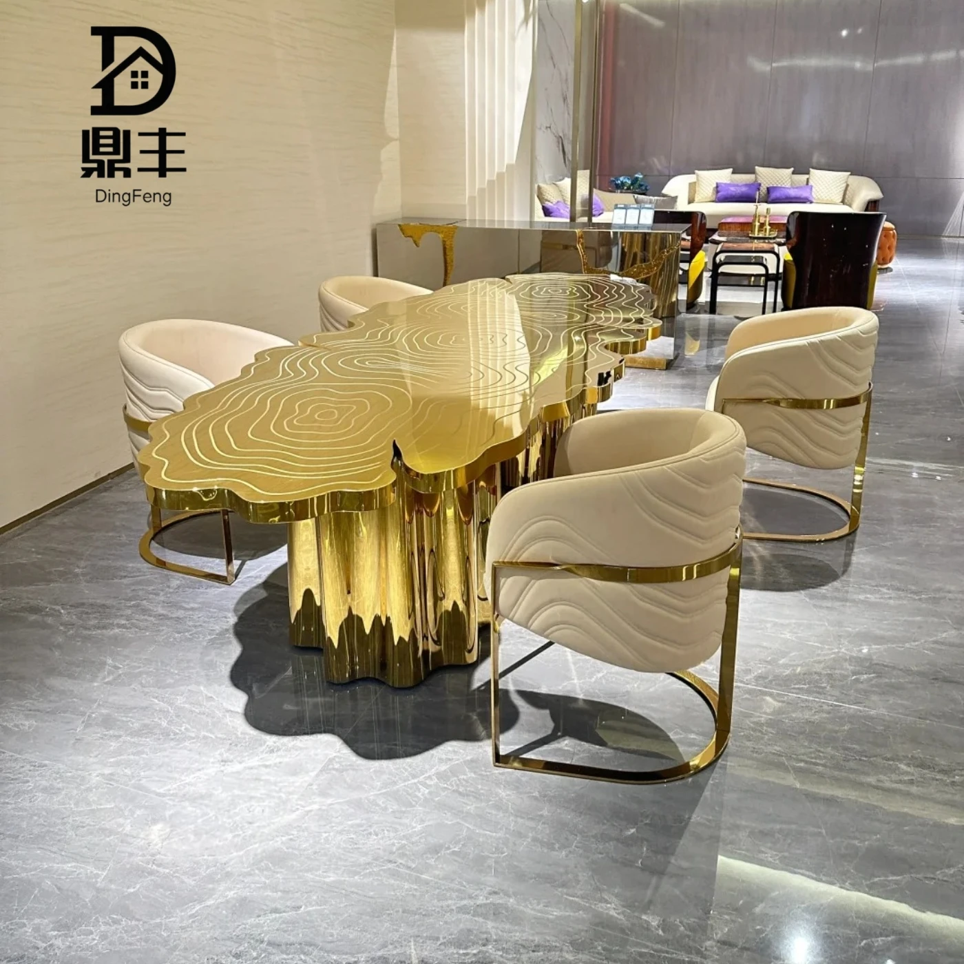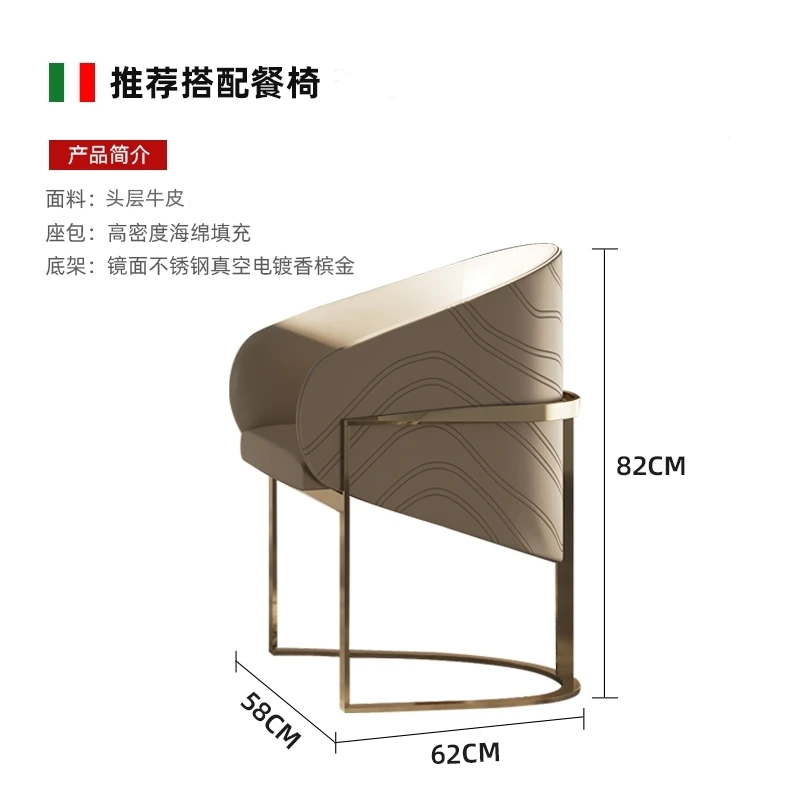 Customized Italian light luxury irregular-shaped dining table stainless steel etched and gold-plated countertop table and chair