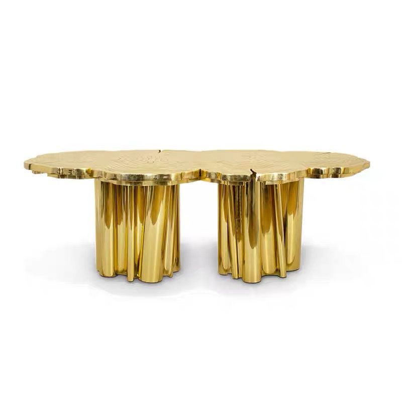 Customized Italian light luxury irregular-shaped dining table stainless steel etched and gold-plated countertop table and chair