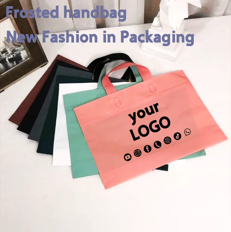 Customized logo frosted shopping bag plastic gift bag party event gift advertising packaging bag printing store name and address