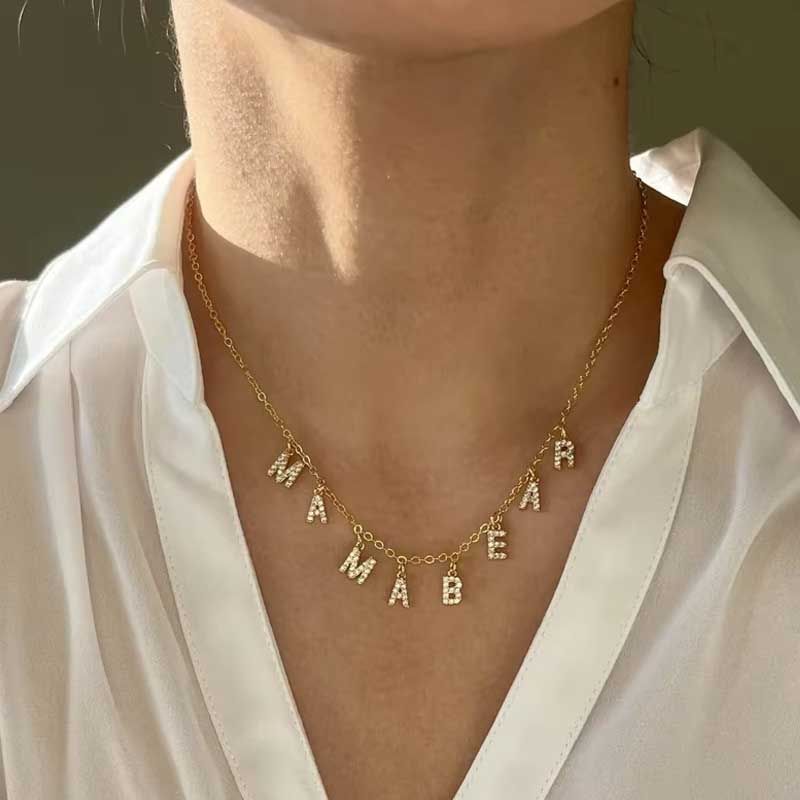 Customized Name Necklace Personalized Zircon 26 Capital Letter Stainless Steel Choker Necklace Pendant Nameplate Jewelry Gift