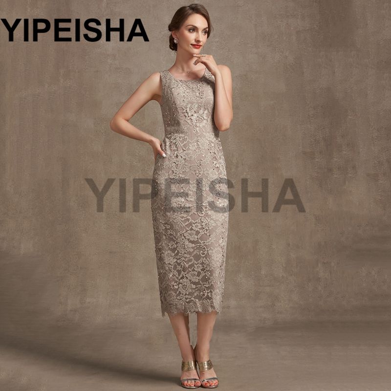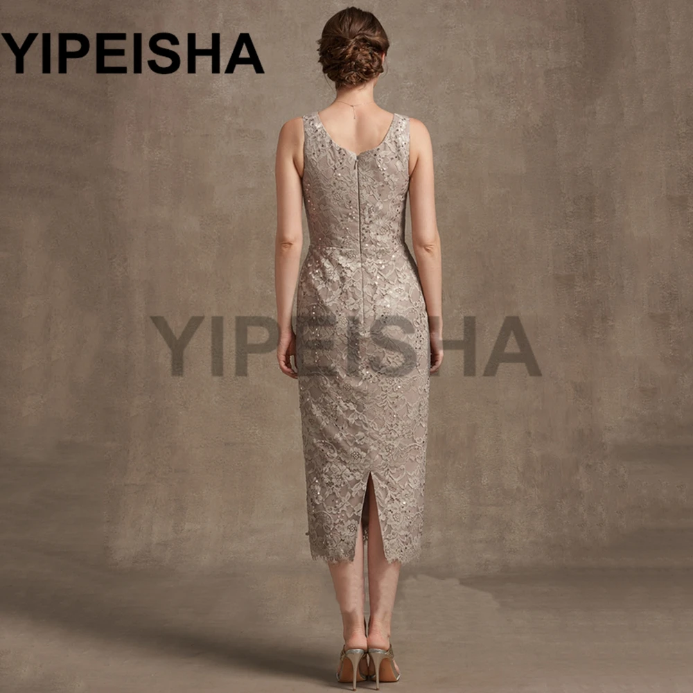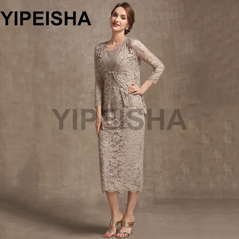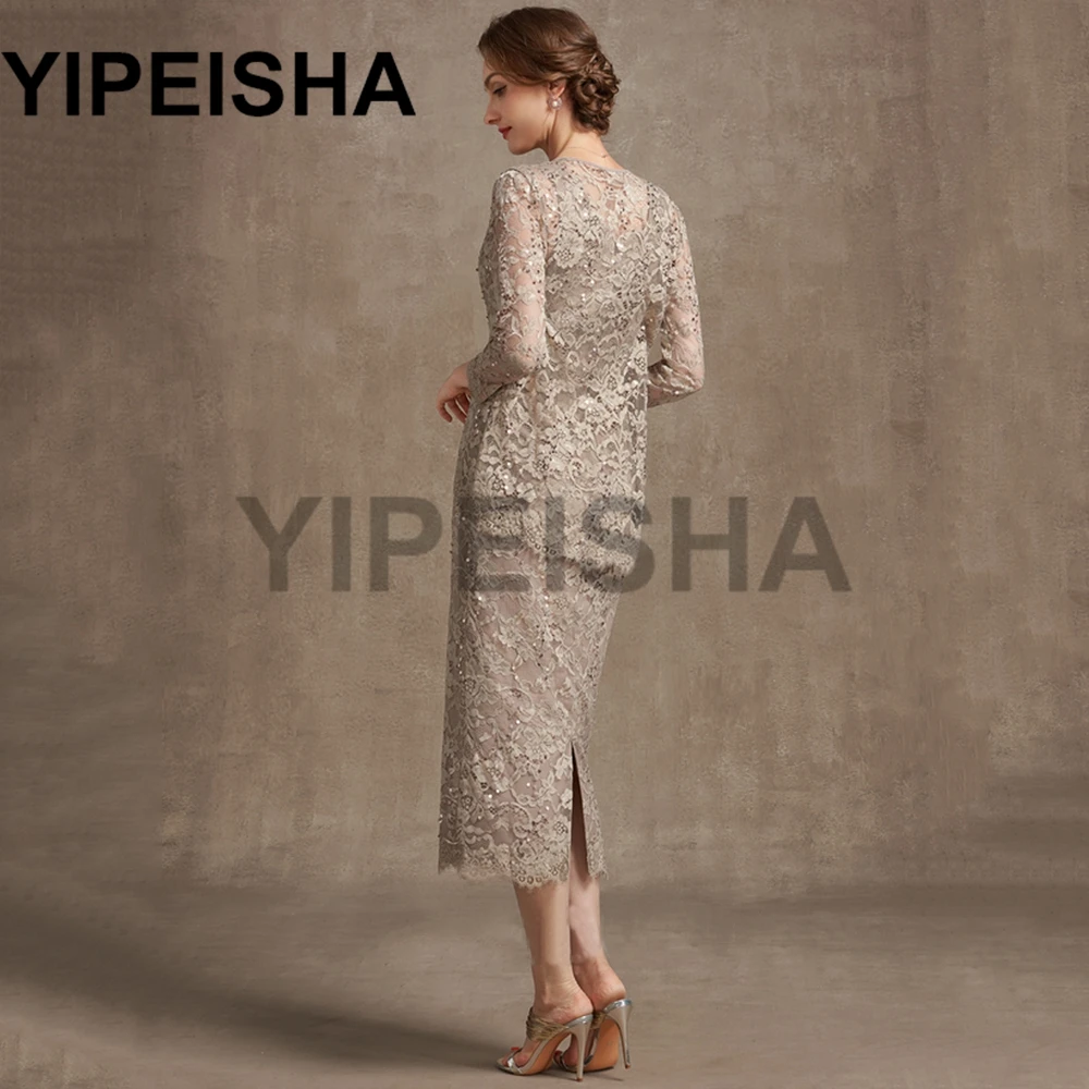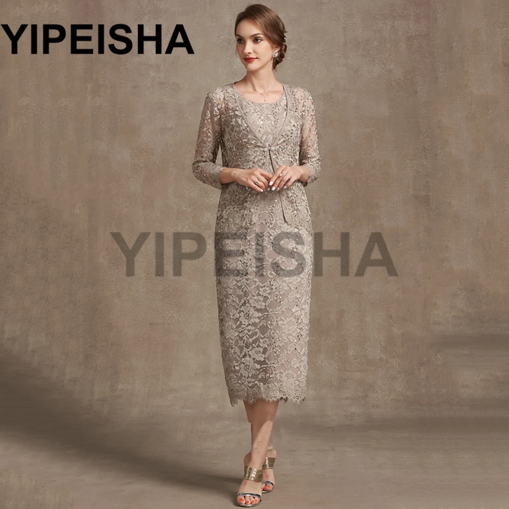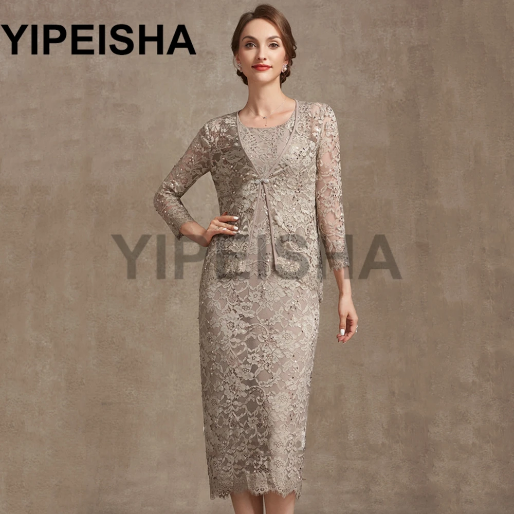 Customized O-Neck Three Quarter Sleeve Lace Mother of The Bride Dress Tea-Length Elegant Wedding Guest Gown with Jacket Свадебн
