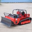 Customized remote-controlled lawnmower, can be equipped with a snow plow attachment, available in red and yellow.