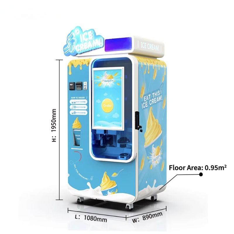 Customized Soft Serve Ice Cream Vending Machine Multi-Flavor Coin Change Return NFC QR Payment SDK Ready