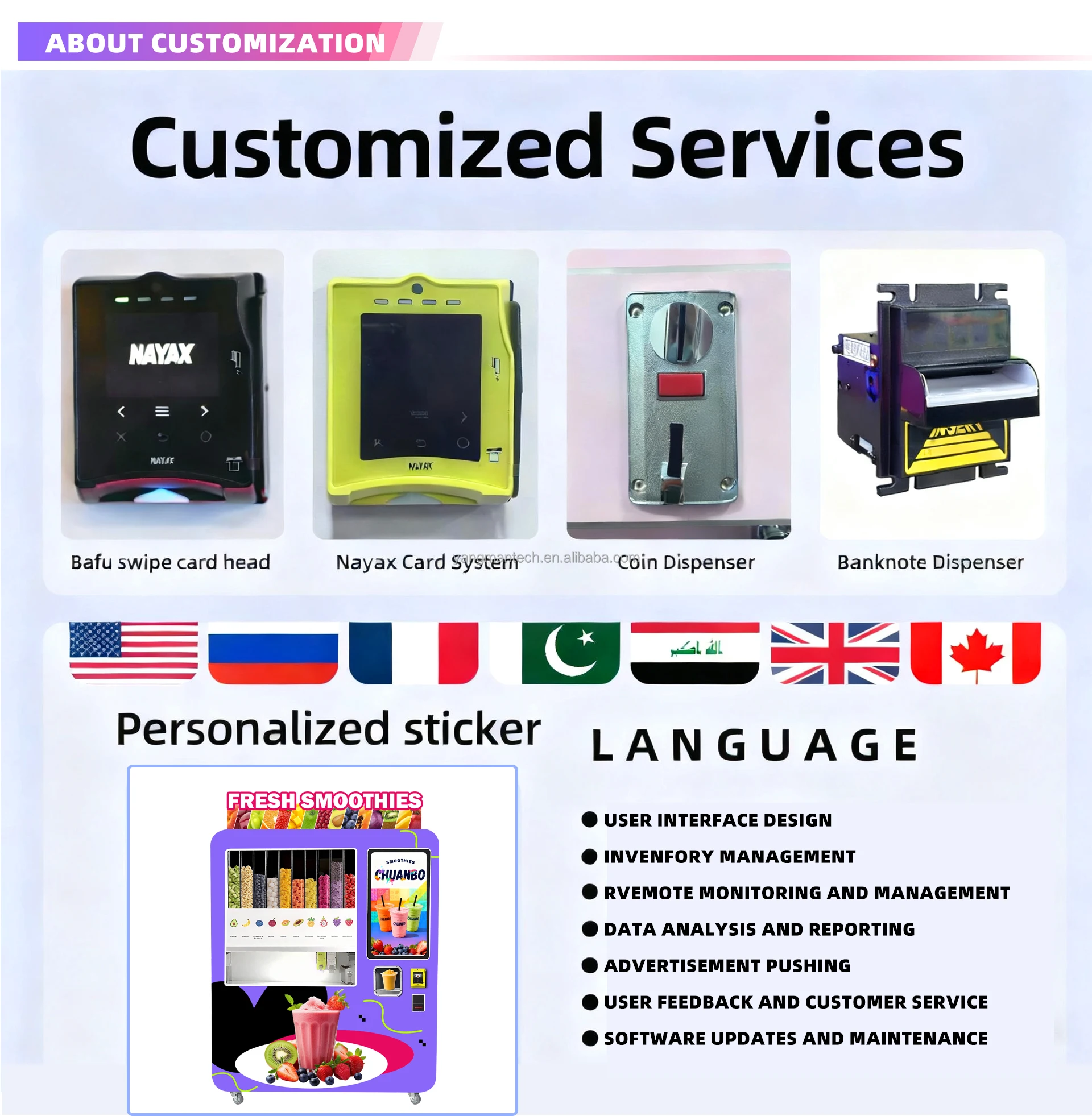 Accepted payment currencies: USD, EUR, JPY, CAD, AUD, HKD, GBP, RMB, CHF;