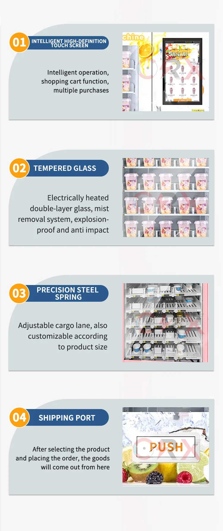 Food machines such as dining carts, pizza machines, cotton candy machines, ice cream machines, popcorn machines, vending machines, etc.