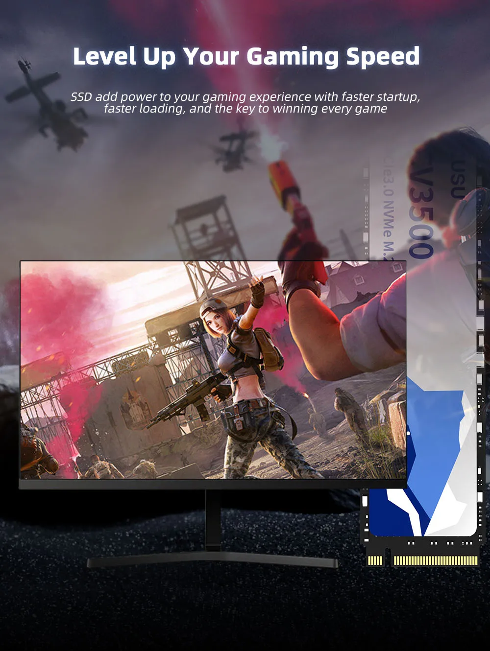 SSD 1TB read speed: 3000 - 3500MB/s, write speed :2000 - 3200MB/s