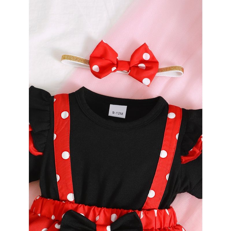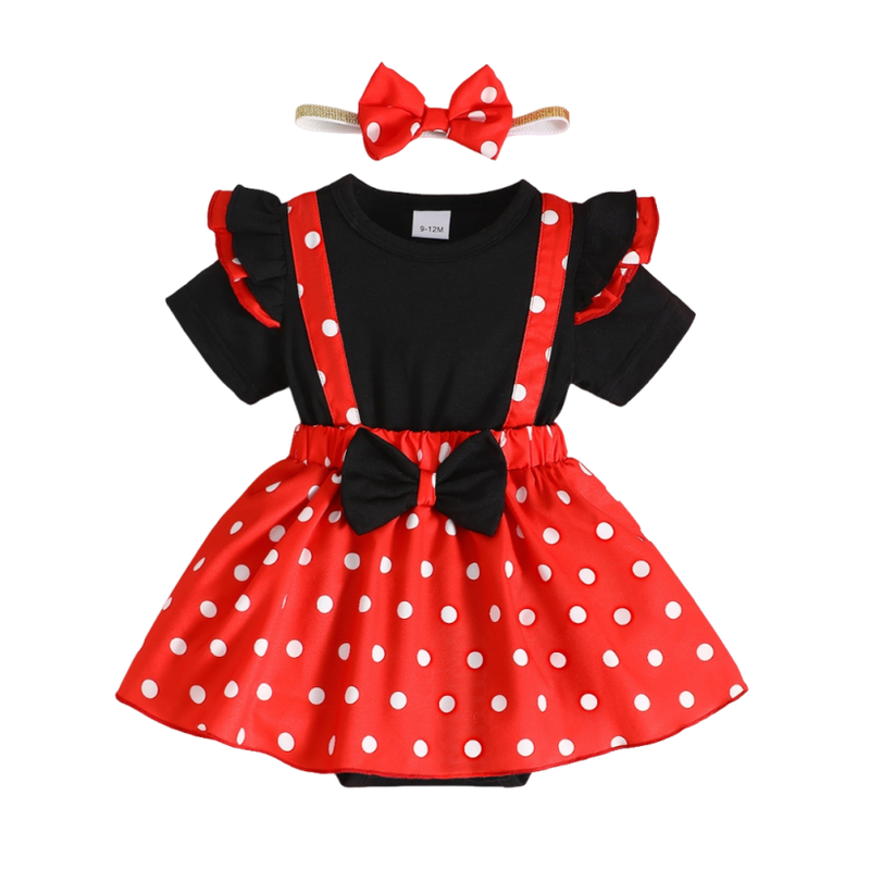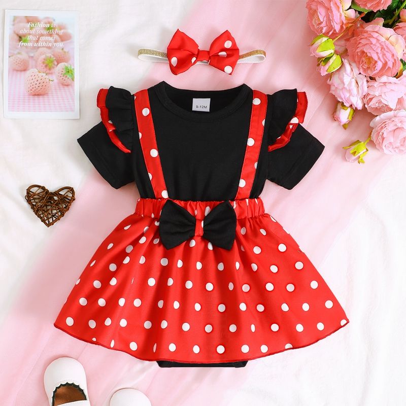 Cute 1-18 Months Infant Red&Black Polka Dot Romper Dress Fly Sleeve Summer Desses with Headband Newborn Baby Girl 2PCS Outfits