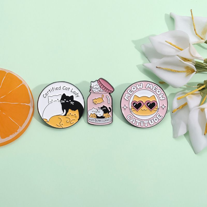 Cute Black White Cats Enamel Pins Cartoon Naughty Kitty Claw Animal Brooches Lapel Badge Fashion Jewelry Gifts For Kids Friends