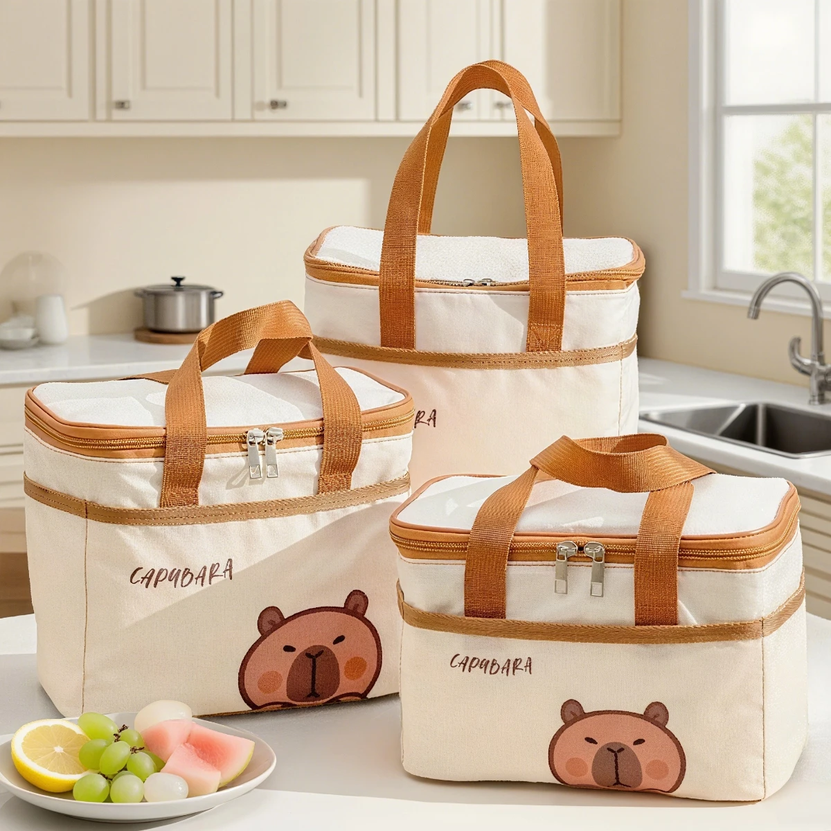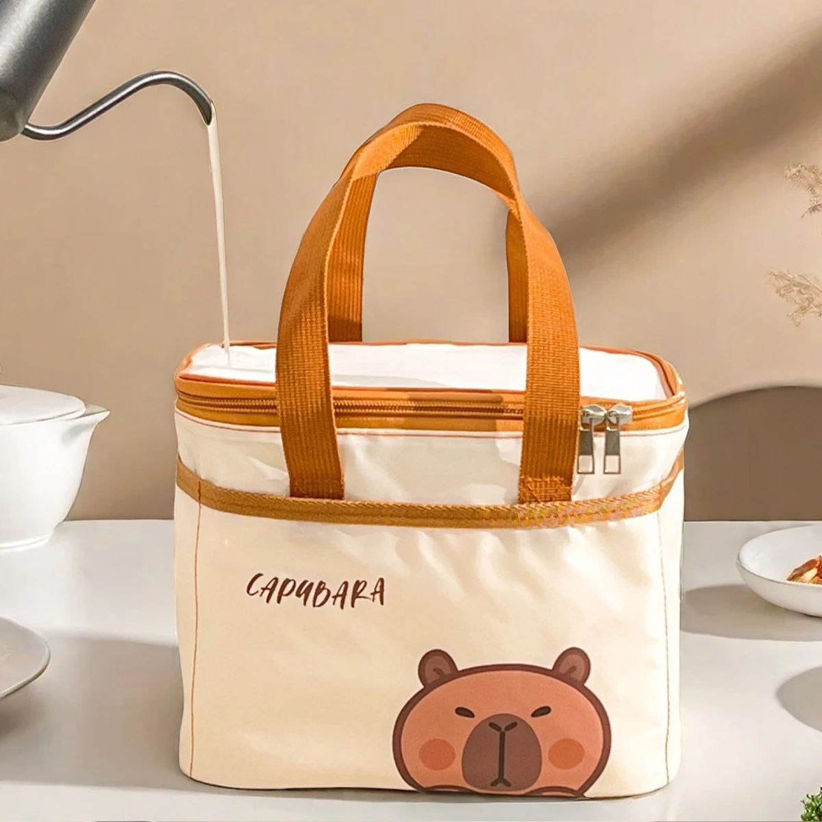 Cute Capybara Insulated Lunch Bag For Student Kid Portable Large Capacity Waterproof Food Thermal Bag Reusable Picnic Cooler Bag