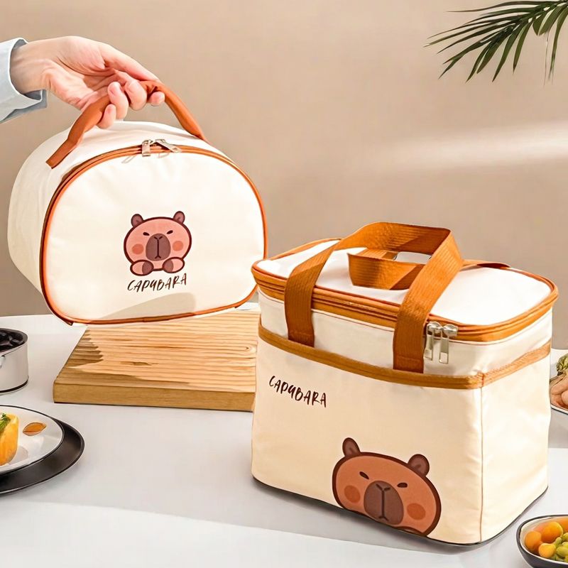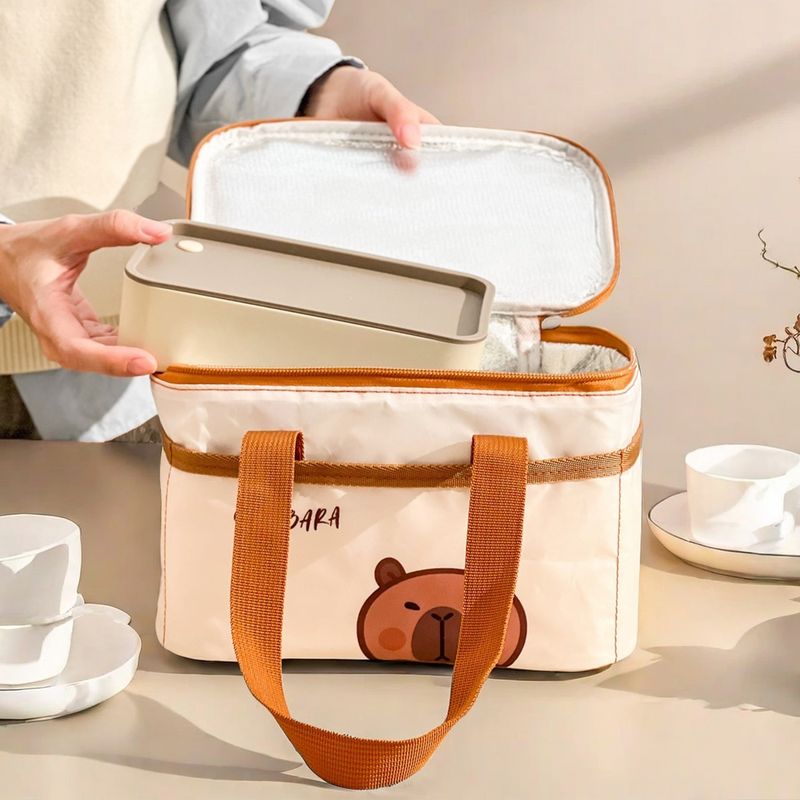 Cute Capybara Insulated Lunch Bag For Student Kid Portable Large Capacity Waterproof Food Thermal Bag Reusable Picnic Cooler Bag